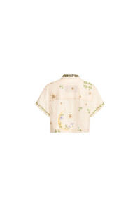 Fall in love with our ´Virtuosa Wild´ button down cropped shirt. Made from pure linen it features delicate hand embroidered details it is bound to become a favorite of the season. Pair it with ´Rommy Wild´ for your go to everyday look - Hand Embroidered Details - Carry over - Cropped shirt - Button down COMPOSITION 100% Linen SIZE & FIT Jessica is 177 cm / 5´8 and is wearing a size extra small.