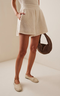 Trinidad native Aisling Camps launched her eponymous knitwear label after working as a mechanical engineer with a focus on sustainability. Each piece is either meticulously made by hand in her Brooklyn studio by a small dedicated team or outsourced to a family run factory in Emilia-Romagna, Italy that has been specializing in knits for three generations. These cozy mini shorts are fixed with a comfortable, wide waist band and relaxed fit. Spun from the softest felted yarn, a signature blend of extra-fine merino wool and nylon. PRODUCT DETAILS - Resort '25 - Pull on - Composition: 80% Extrafine Merino, 20% Nylon - Dry clean only - Handmade in NYC SIZE & FIT - Our model is wearing a size Small - Model is 5'11" with a 32" bust, 25" waist, and 35.5" hip - Designed for a relaxed fit