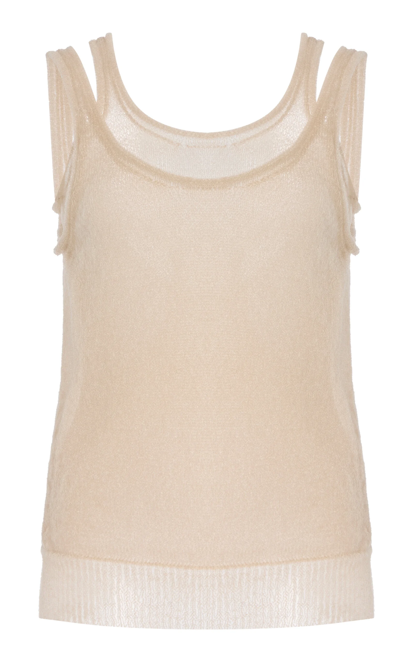 Trinidad native Aisling Camps launched her eponymous knitwear label after working as a mechanical engineer with a focus on sustainability. Each piece is either meticulously made by hand in her Brooklyn studio by a small dedicated team or outsourced to a family run factory in Emilia-Romagna, Italy that has been specializing in knits for three generations. Made of translucent nylon yarn, the film tank is a layered double tank. It featured cutouts on the inner layer and can be folded down and work as a tunic if desired. PRODUCT DETAILS - Pre-Fall '25 - Slip on - Composition: 100% nylon - Designer color: French Grey - Dry clean - Made in the USA SIZE & FIT - Our model is wearing a size Small - Model is 5'10" with a 30" bust, 24" waist, and 34" hip - Designed for a slim fit