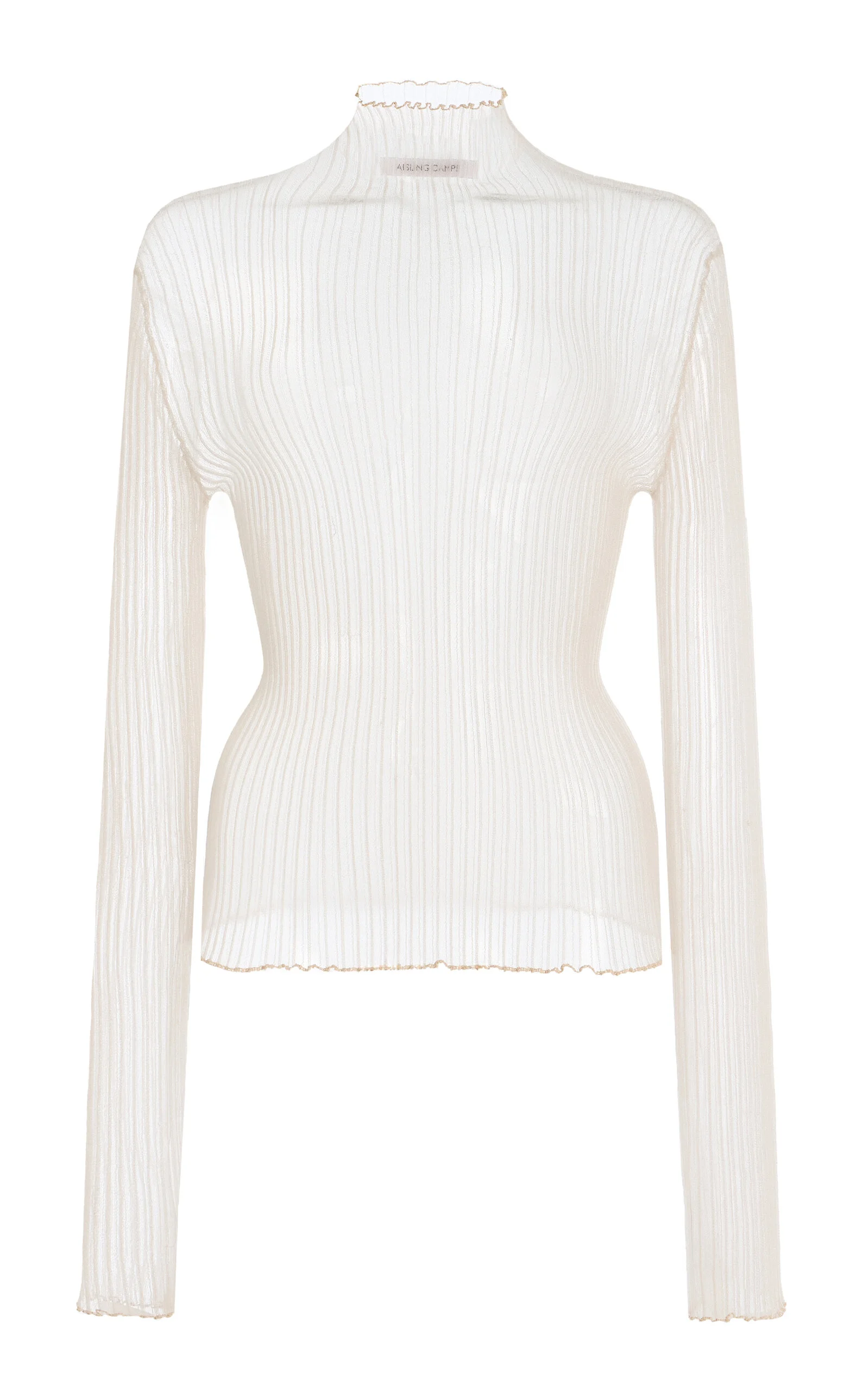 Trinidad native Aisling Camps launched her eponymous knitwear label after working as a mechanical engineer with a focus on sustainability. Each piece is either meticulously made by hand in her Brooklyn studio by a small dedicated team or outsourced to a family run factory in Emilia-Romagna, Italy that has been specializing in knits for three generations. 'Modern Mist' is a high-neck top made from an ultra-sheer ribbed knit. PRODUCT DETAILS - Resort '26 - Slip on - Composition: 100% nylon - Designer color: French Grey - Dry clean - Imported SIZE & FIT - Our model is wearing a size Small - Model is 5'10" with a 30" bust, 24" waist, and 34" hip