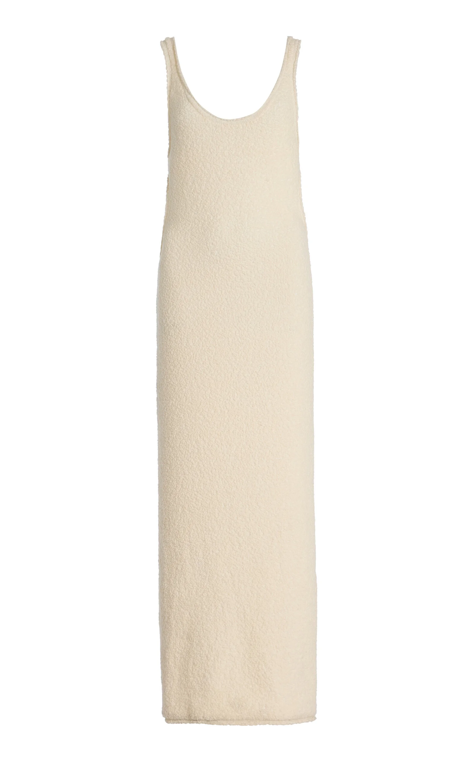 Trinidad native Aisling Camps launched her eponymous knitwear label after working as a mechanical engineer with a focus on sustainability. Each piece is either meticulously made by hand in her Brooklyn studio by a small dedicated team or outsourced to a family run factory in Emilia-Romagna, Italy that has been specializing in knits for three generations. Spun from a sturdy merino wool-poly blend, this 'Pebble' dress is named for its textured form. Complete with an avant-garde racer back and cropped to a midi hem. PRODUCT DETAILS - Pre-Fall '25 - Slip on - Composition: 76% Extrafine Merino Wool, 23% Polyamide, 1% Elastane - Dry clean only - Made in Italy SIZE & FIT - Our model is wearing a size Small - Model is 5'10" with a 30" bust, 24" waist, and 34" hip