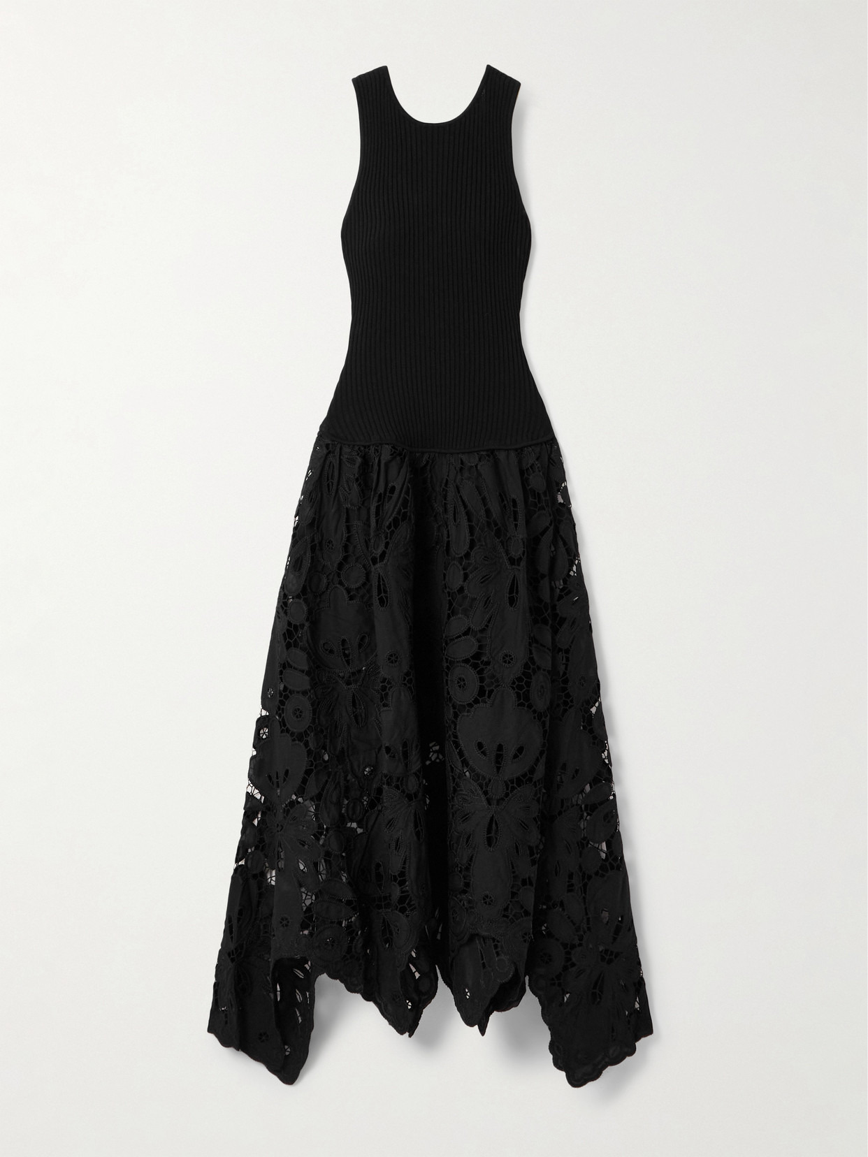 Atlas Asymmetric Ribbed-knit And Guipure Lace Midi Dress