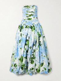 Behold Strapless Ruched Floral-print Cotton-poplin Gown
