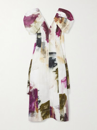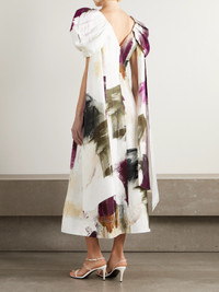 Aje's 'Bisou' midi dress is artistic in both form and print - the sculptural silhouette is matched by the painterly 'Impressionist' pattern, evoking soft brushstrokes and layered color. It's woven with plenty of breathable linen and has dramatic puffed sleeves and a floaty skirt.