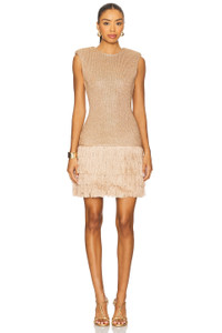 - Self: 66% polyester 34% metallic Lining: 55% viscose 30% recycled nylon 14% nylon 1% elastane Contrast Fabric: 71% polyester 29% metallic - Dry clean only - Fully lined - Hidden back zip closure - Shoulder padding - Fringed hem - Midweight fully fashion knit fabric - Revolve Style No. AJER-WD68 - Manufacturer Style No. 25PF5262