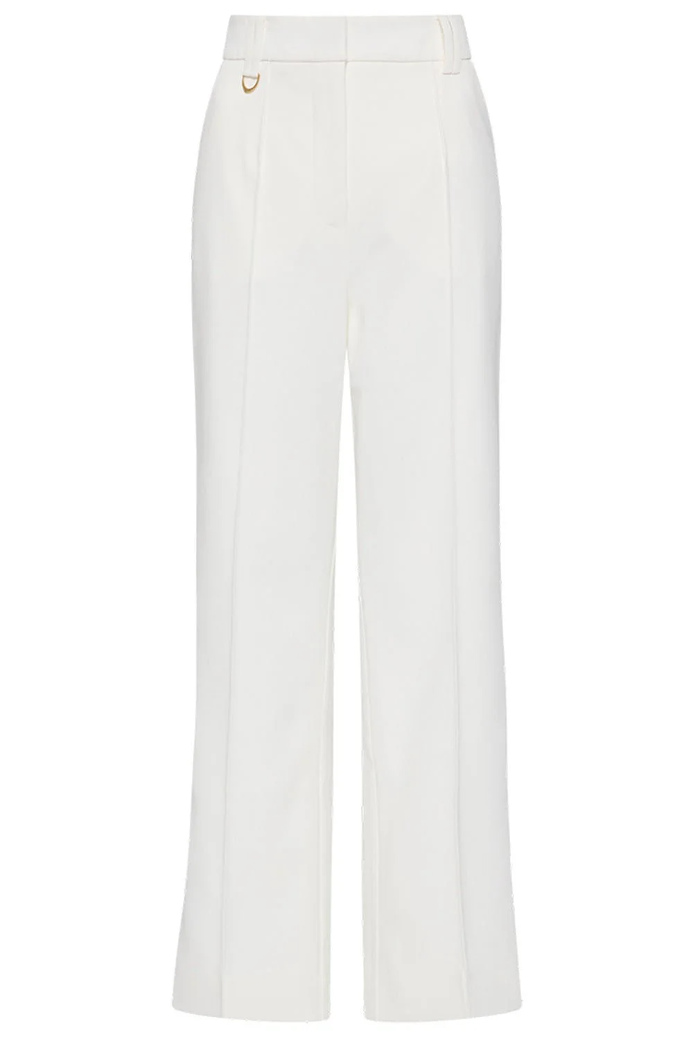 DETAILS AND INSIGHT Aje caterina pant in ivory. 67% ACETATE, 33% POLYESTER Dry Clean Only Made in China Ships by Sept. 14 Style 24SS3075-IVRY