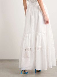 EDITORS'NOTES Aje’s 'Chant' maxi skirt will add a charming touch to your warm-weather wardrobe. It’s made from lightweight cotton-voile detailed with intricate crochet trims and features a partially elasticated waistband. Wear yours with the coordinating 'Acapella' top. SIZE & FIT Model measurements: - Fits true to size, take your normal size - Maxi-length, designed to be worn at the waist - Partially elasticated at the waist for a flexible fit - Lightweight, non-stretchy fabric - Model is 177cm/ 5'10" and is wearing a UK 8 - Bust: 81cm/ 32" - Waist: 61cm/ 24” - Hip: 81cm/ 32" DETAILS & CARE - White cotton-voile and crochet - Concealed hook and zip fastening at back - 100% cotton; lining: 100% cotton - Hand wash