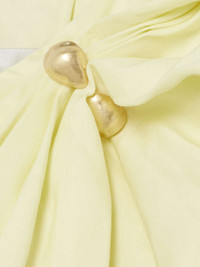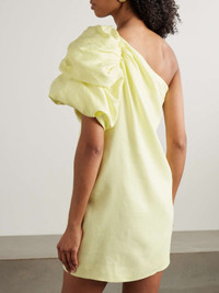 EDITORS'NOTES Aje's dresses are always designed with a sense of feminine ease. This mini 'Cira' style is made from a linen-blend and drapes over the frame, softly gathering at the shoulder to create a voluminous sleeve. Match your jewelry to the gold-tone accent. SIZE & FIT Model measurements: - Fits true to size, take your normal size - Those with a curvy figure may wish to take the next size up - Intended for a close fit - Mid-weight, non-stretchy fabric - Model is 177cm/ 5'10" and is wearing a size UK 8 - Bust: 77cm/ 30.5" - Waist: 62cm/ 24.5" - Hip: 88cm/ 34.5" DETAILS & CARE - Pastel-yellow linen-blend - Partially concealed hook and zip fastening along side - 65% linen, 35% viscose; lining: 100% polyester - Dry clean - Designer color: Lemon