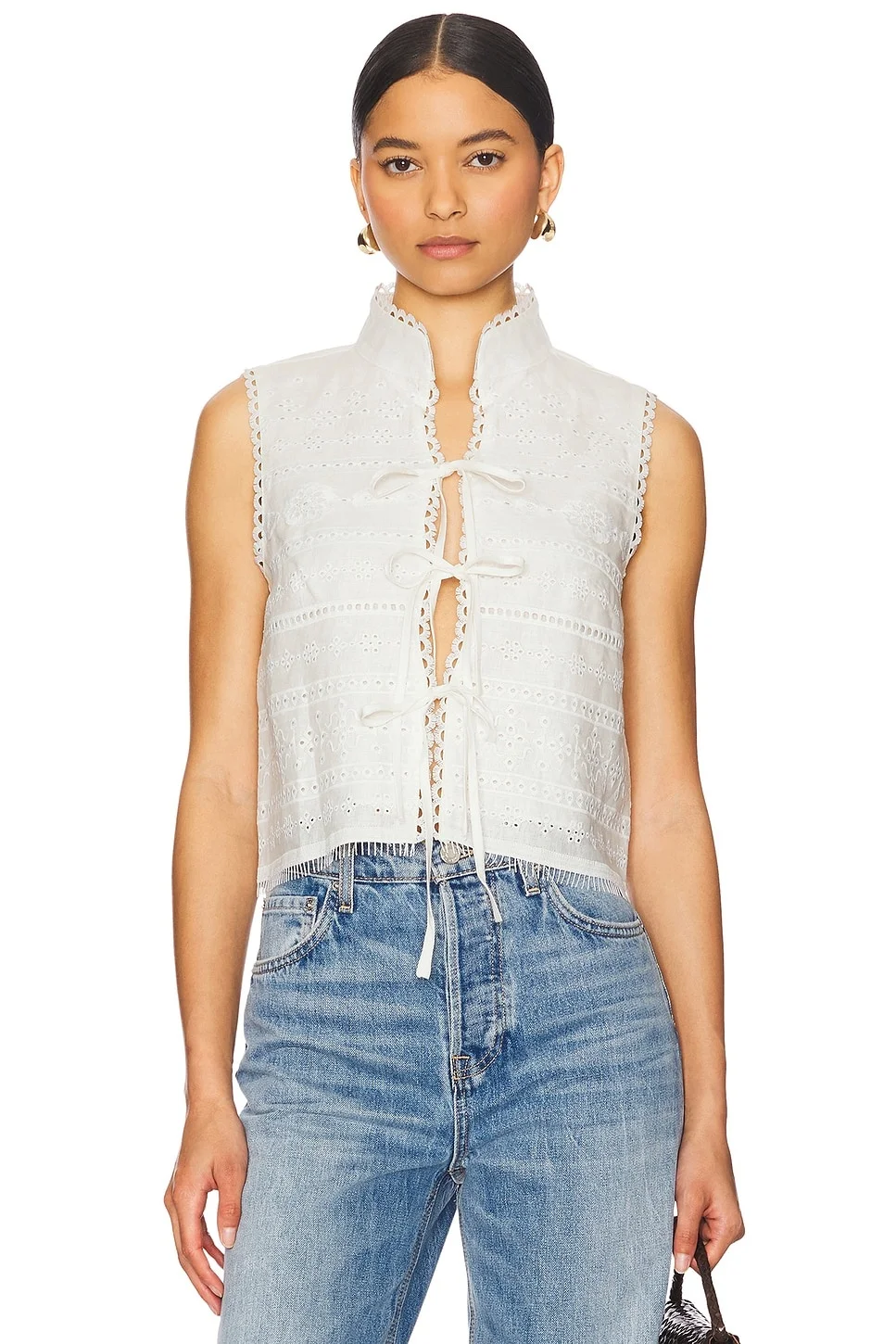 - Self & Contrast: 100% linen Lining: 100% cotton - Hand wash - Front tie closure - Midweight linen fabric with tonal embroidery - Revolve Style No. AJER-WS37 - Manufacturer Style No. 25SU1157