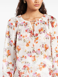 Cyma blouse Highlights - White/multicolour - Linen-silk blend - Floral print - Long sleeves - Scoop neck - Elasticated cuffs Imported Composition Linen/Flax 75%, Silk 25%