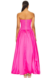 - Self & Lining: 100% cotton Contrast Fabric: 100% polyester - Dry clean only - Fully lined - Back zip closure - Boned bodice - Bubble skirt - Heavyweight poplin fabric - Neckline to hem measures approx 52" in length - Revolve Style No. AJER-WD83 - Manufacturer Style No. 25SS5501