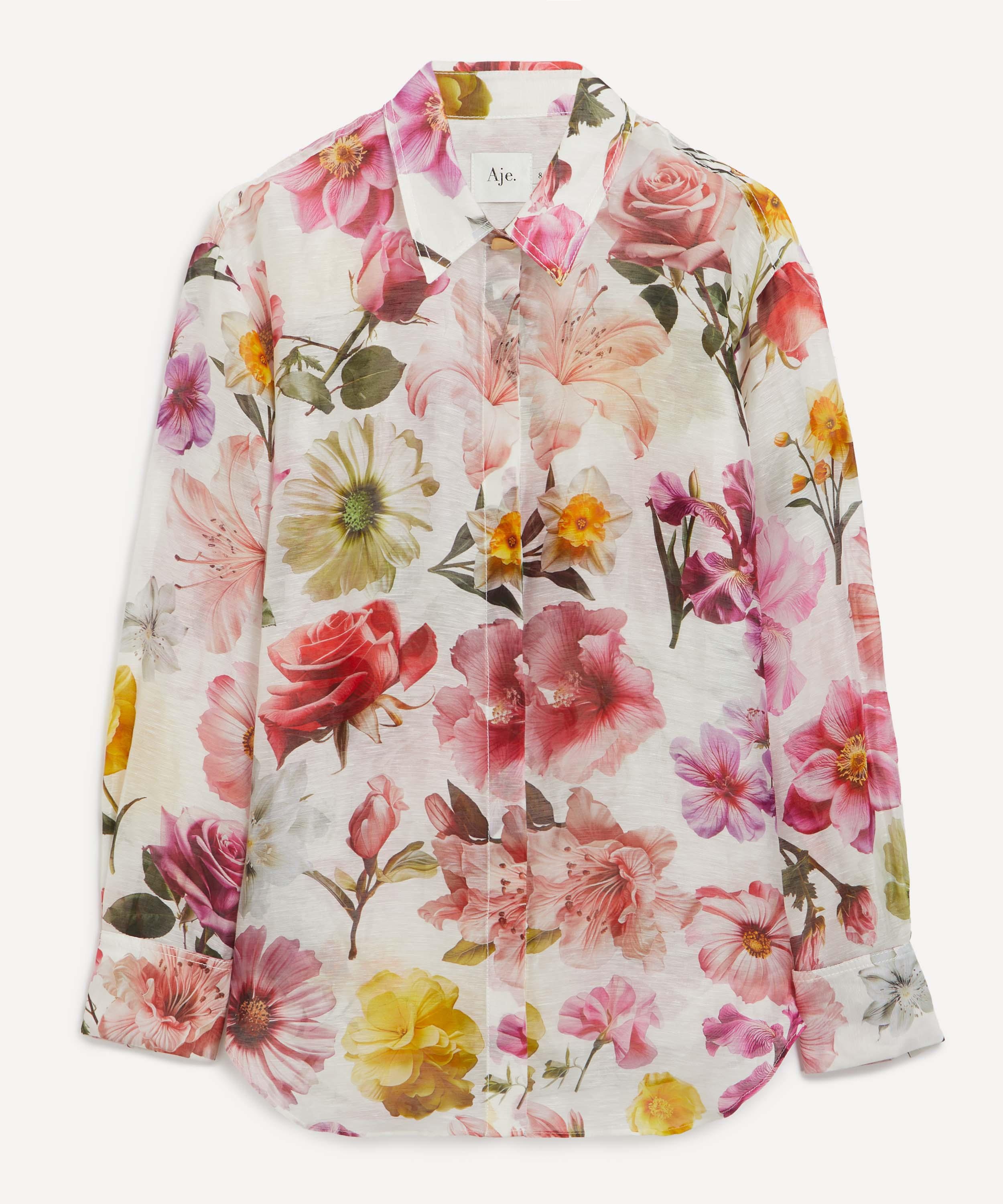 DETAILS Linen-silk shirt Collage floral print Oversized fit Shirt collar with feature button Front button fastening Buttoned cuffs Curved hem SIZE & FIT Model is 176cm/5'9.5"; Chest: 81cm; Waist: 61cm; Hip: 89cm and wears a size 8 COMPOSITION & CARE 75% Linen; 25% Silk Dry clean