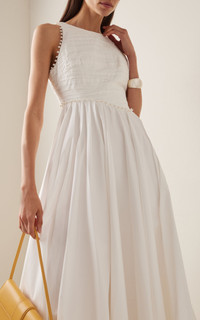 Florence Pearl-Trimmed Cotton Midi Dress ivory