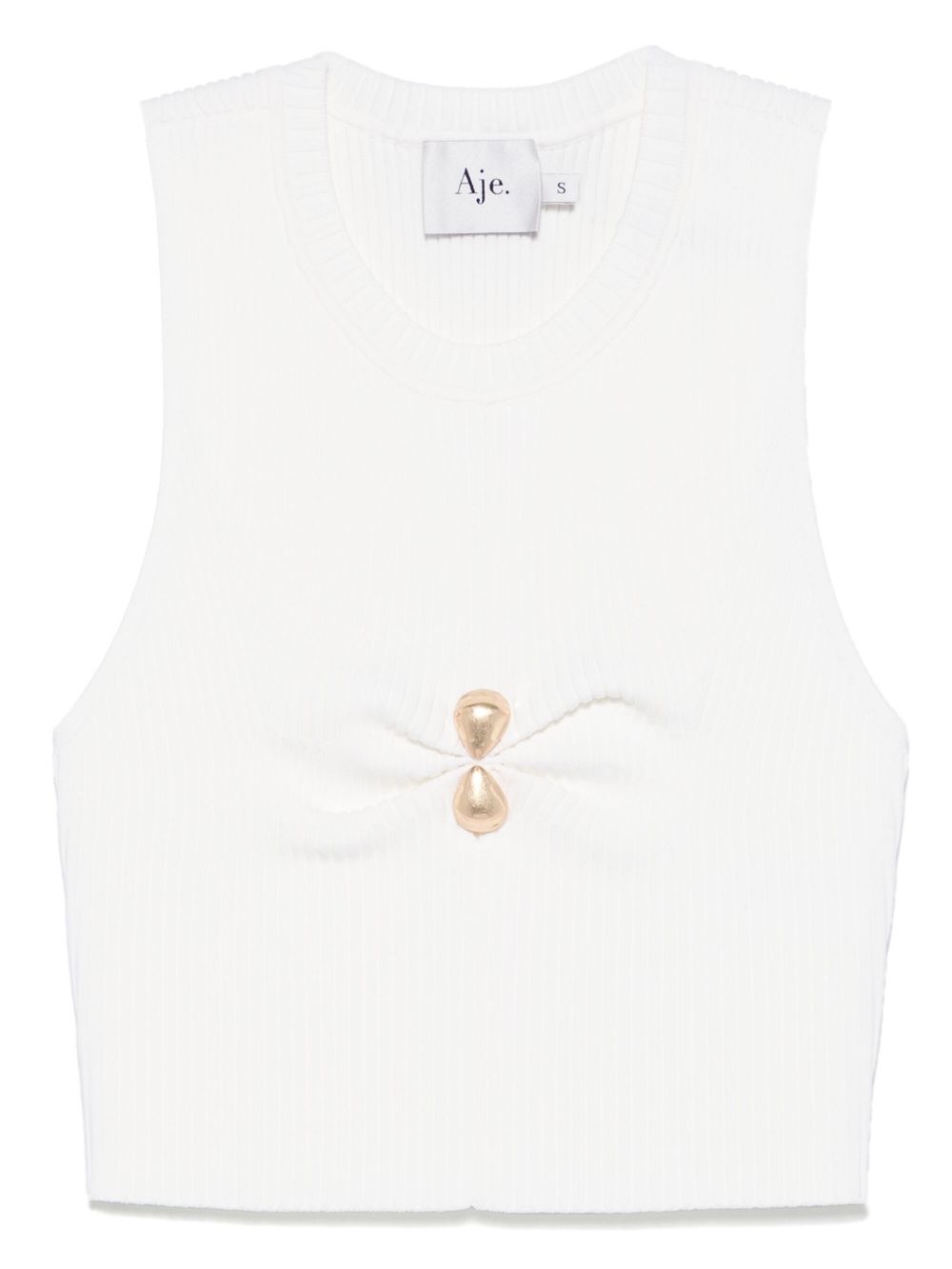 Focal top Highlights - White - Crew neck - Sleeveless - Cropped Imported Composition Viscose 60%, Nylon 32%, Elastane 8% SIZE & FIT Model measurements Height 5 ft 10 in(1.78 m) Bust/Chest 33.46 in(85 cm) Hips 36.22 in(92 cm) Waist 23.22 in(59 cm) FittingInformation Designed for a close fit throughout Cropped in length Made with a midweight knit, this piece offers some stretch