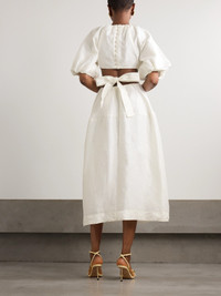 Mimosa Cutout Gathered Linen-blend Midi Dress