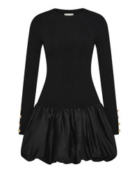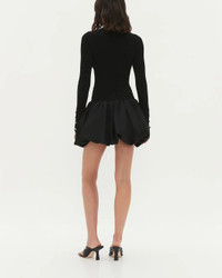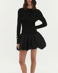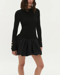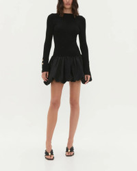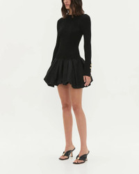 The Moonlight Knit Mini Dress in Black by Aje is a long sleeve, high neck dress featuring a fitted, rib knit bodice and full mini skirt crafted in contrasting fabric. This striking mini is perfect for date night. Model wears a size AU 8/S - 77% Rayon 23% Nylon - Knit mini dress, Slim fit sleeves with hammered bead detail - Slip on style - Style with a strappy heel and bold clutch. - #25SS5409