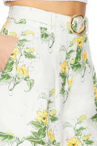 - Self: 55% linen 45% viscose Lining: 100% cotton - Made in China - Dry clean only - Zip fly with double hook and bar closure - Adjustable belt with gold-tone buckle closure and side seam pockets - Midweight linen fabric Item not sold as a set - Shorts measure approx 14.5" in length - Revolve Style No. AJER-WF4 - Manufacturer Style No. 25CR3036