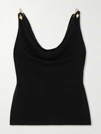 Aje's 'Peyton' top is threaded with slender chain straps anchored with hammered beads. It's cut from soft jersey and has a beautiful drape and slinky cowl neckline. You'll be able to wear it without a bra, thanks to the internal shelf support.