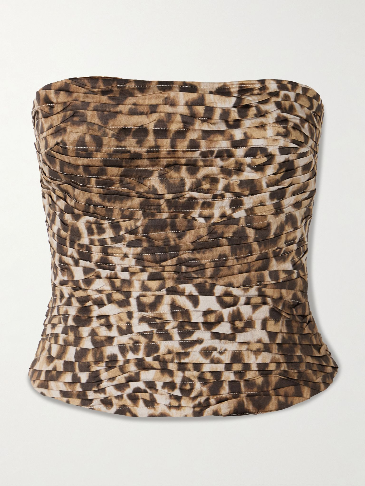 Sunbeam strapless ruched leopard-print cotton-poplin top Leopard print