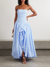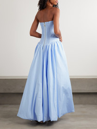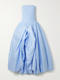 Dramatic proportions and distinct texture define Aje's 'Violette' gown. Cut from cotton-poplin, it's ruched at the bodice to emphasize the close fit. The gathered skirt's ruffles and bubble hem offer contrasting volume.