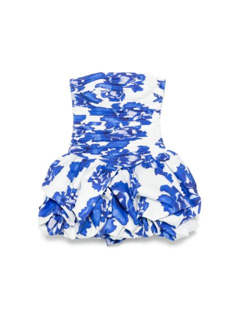 strapless dress Straight neckline Fitted, ruched bodice Mini bubble hem skirt External back zip Lined 100% Cotton UK size Model code: 24SS5088 Variant code: IMPST