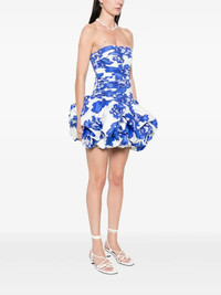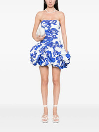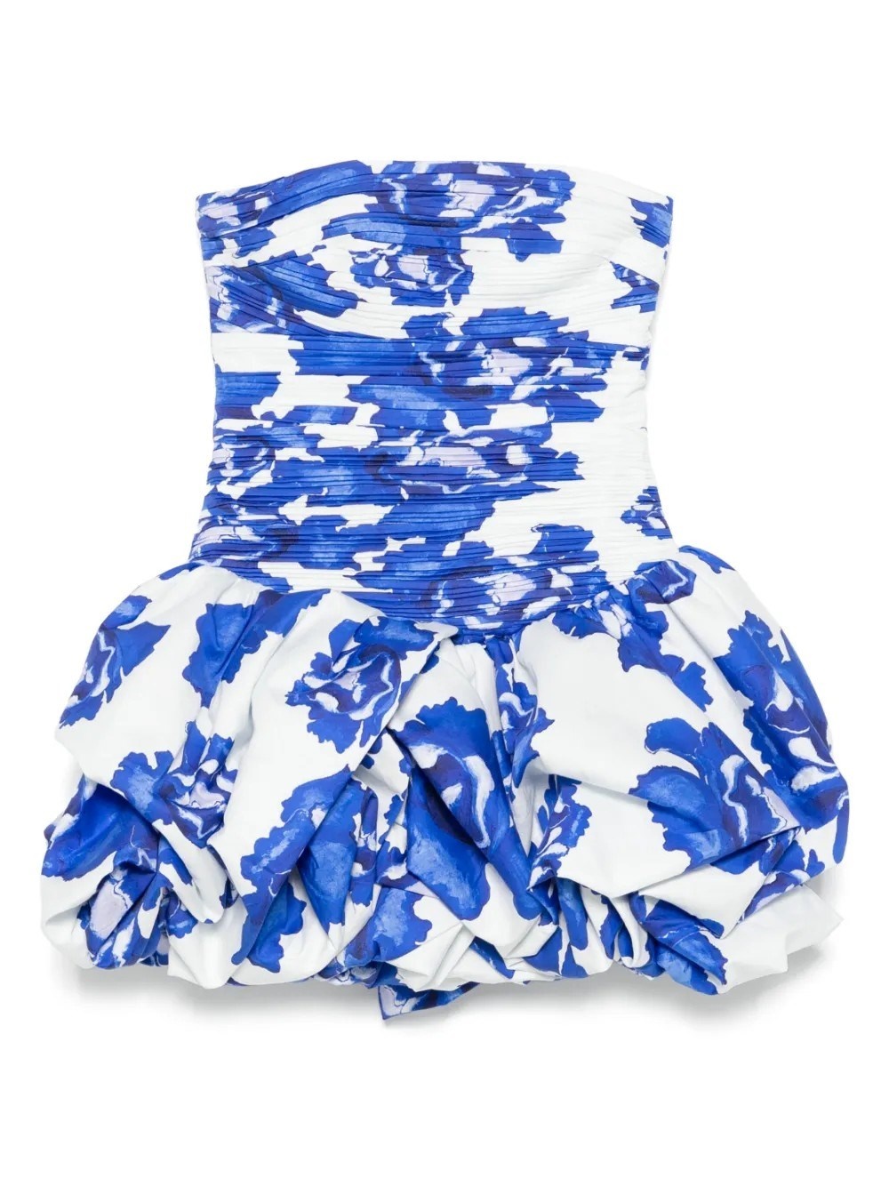 strapless dress Straight neckline Fitted, ruched bodice Mini bubble hem skirt External back zip Lined 100% Cotton UK size Model code: 24SS5088 Variant code: CBBBL