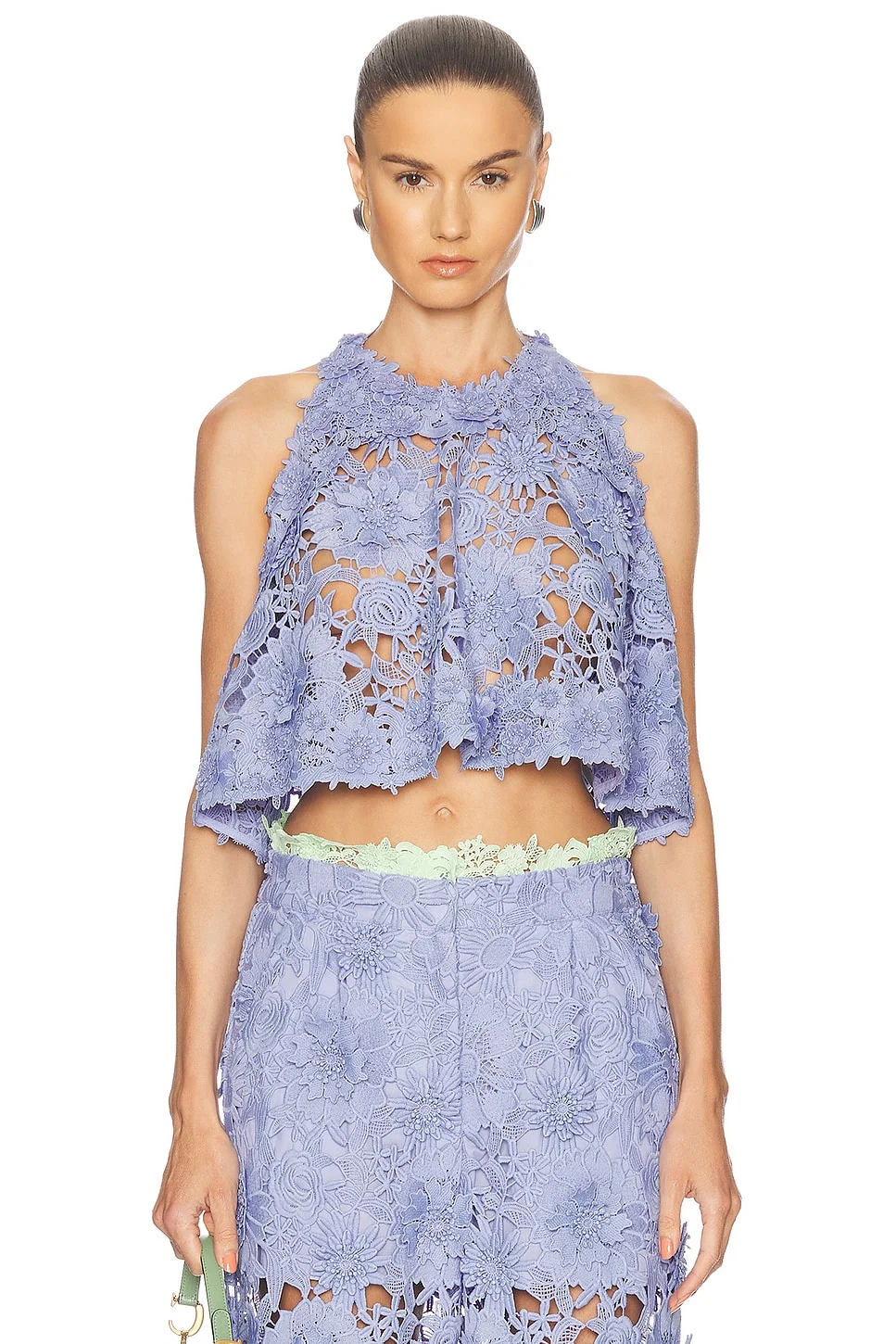 Details - Self & Contrast Fabric: 100% polyester - Lining: 100% cotton - Made in China - Dry clean only - Back hook and eye closure - Midweight lace fabric with halterneck styling - Item not sold as a set - Garment is made with a semi-sheer fabric, undergarments can show through - Our Style No. AKNF-WS43 - Manufacturer Style No. S25-5074-DEL