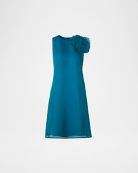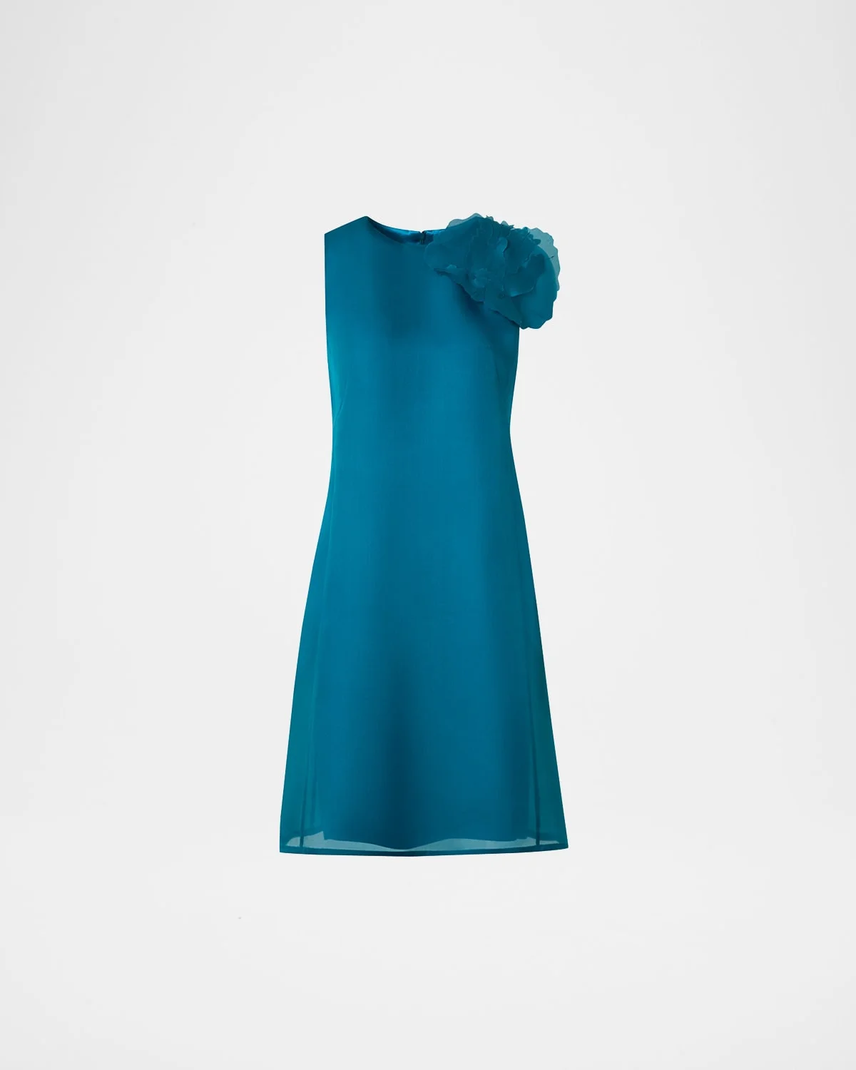 - Akris silk organza dress embellished with a 3D anemone corsage on the shoulder - Round neckline - Sleeveless - A-line silhouette - Knee length - Invisible back zip - Silk - Lining: Viscose/silk - Dry clean - Made in Romania