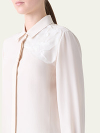 Akris silk crepe blouse is adorned with a 3D organza anemone embellishment and Swarovski® crystals on the shoulder Shirt collar; hidden button placket Long sleeves; button cuffs Relaxed fit Inverted back pleat Silk Dry clean Made in Romania Online Inquiries: BGS21_B9UE0| Store Inquiries: #4970729