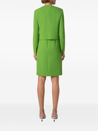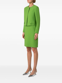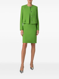 wool jacket Highlights - Green - Concealed front button fastening - Front flap pockets - Collarless - Long sleeves Imported Composition Lining: Cupro 100% Outer: Virgin Wool 100%