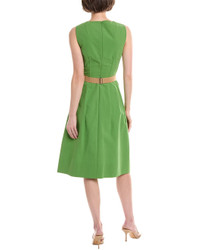 - Color/pattern: pure green - Approximately 42.5in from shoulder to hem - Model is 5'9 and is wearing a size 6. Measurements may vary slightly by size. - Design details: pleated skirt - Center back zipper - Shell: 100% cotton - Lining: 100% curpo - Dry clean only - Imported