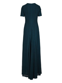 short-sleeve maxi dress Highlights - Teal blue - Short sleeves - Round neck - A-line skirt - Fitted bodice Made in United States Composition Polyester 100% Washing instructions Read Manufacturer Guidelines