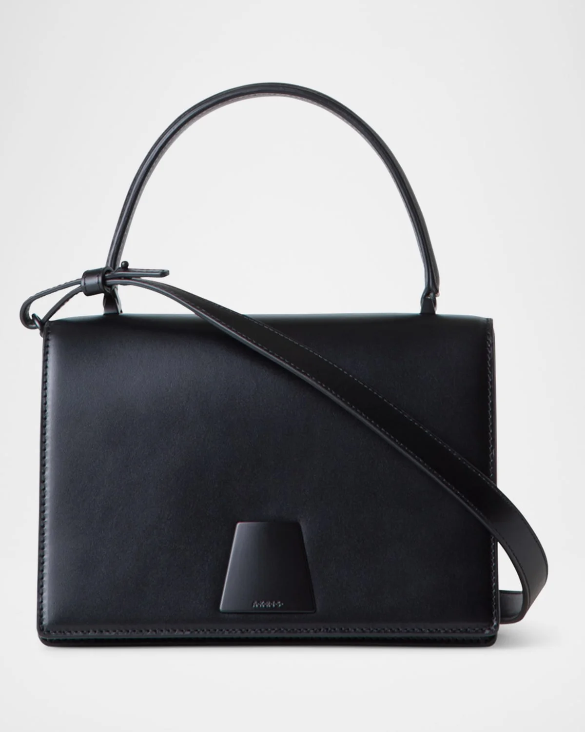 - Akris "Alice" top handle bag in smooth leather - Top handle - Removable, adjustable shoulder strap - Can be worn as a top handle or shoulder.crossbody bag - Flap top - Interior, one zip pocket - Approx. 5.5"H x 8.8"W x 1.5"D - Spot clean - Made in Romania