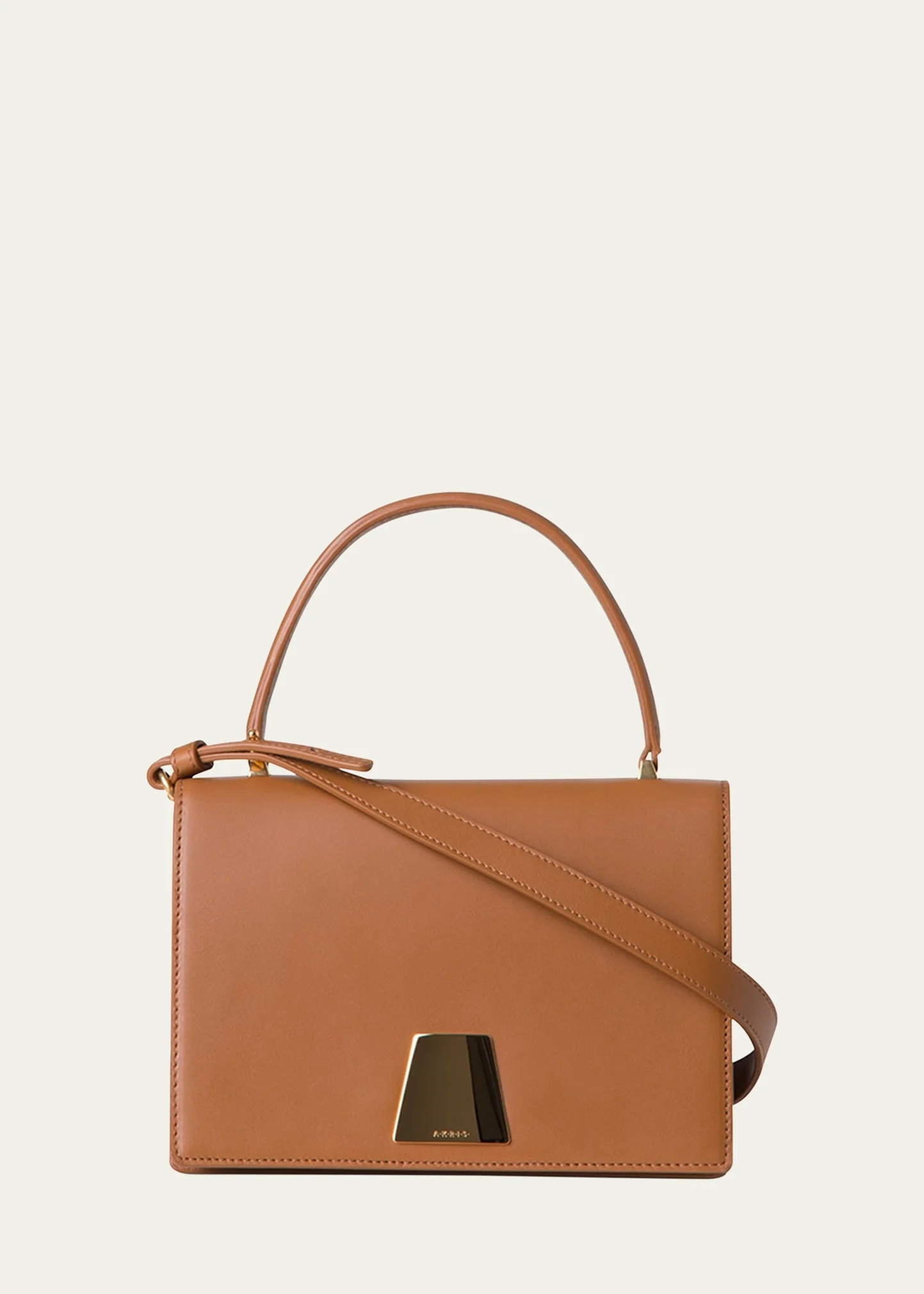 Akris "Alice" top handle bag in leather Top handle Detachable, adjustable shoulder strap Can be worn as a top handle or shoulder bag Flap top with magnetic closure Interior, one zip pocket Approx. 5.5"H x 7.8"W x 4.1"D Spot clean Made in Romania Online Inquiries: BGS21_V6FZN| Store Inquiries: #4969541