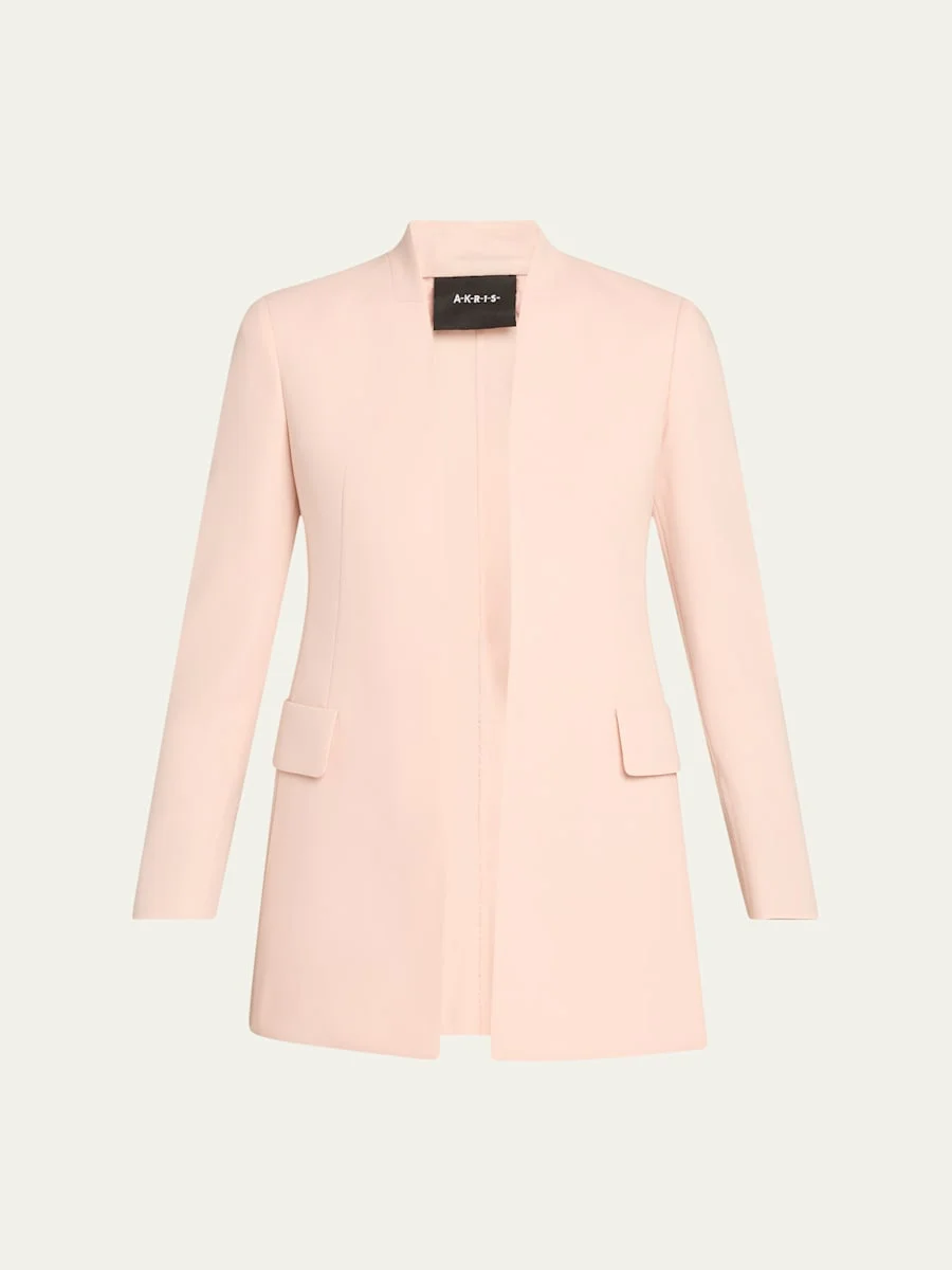 Akris "Alvar" double-face wool cardigan-style jacket Open front (no closure) Long sleeves; split cuffs Front flap pockets Longline silhouette Wool/nylon/polyamide Dry clean Made in Romania Online Inquiries: BGS21_B9JZ8| Store Inquiries: #4888066