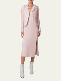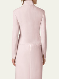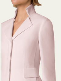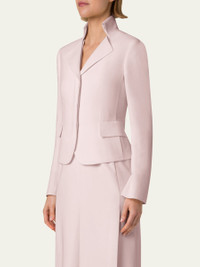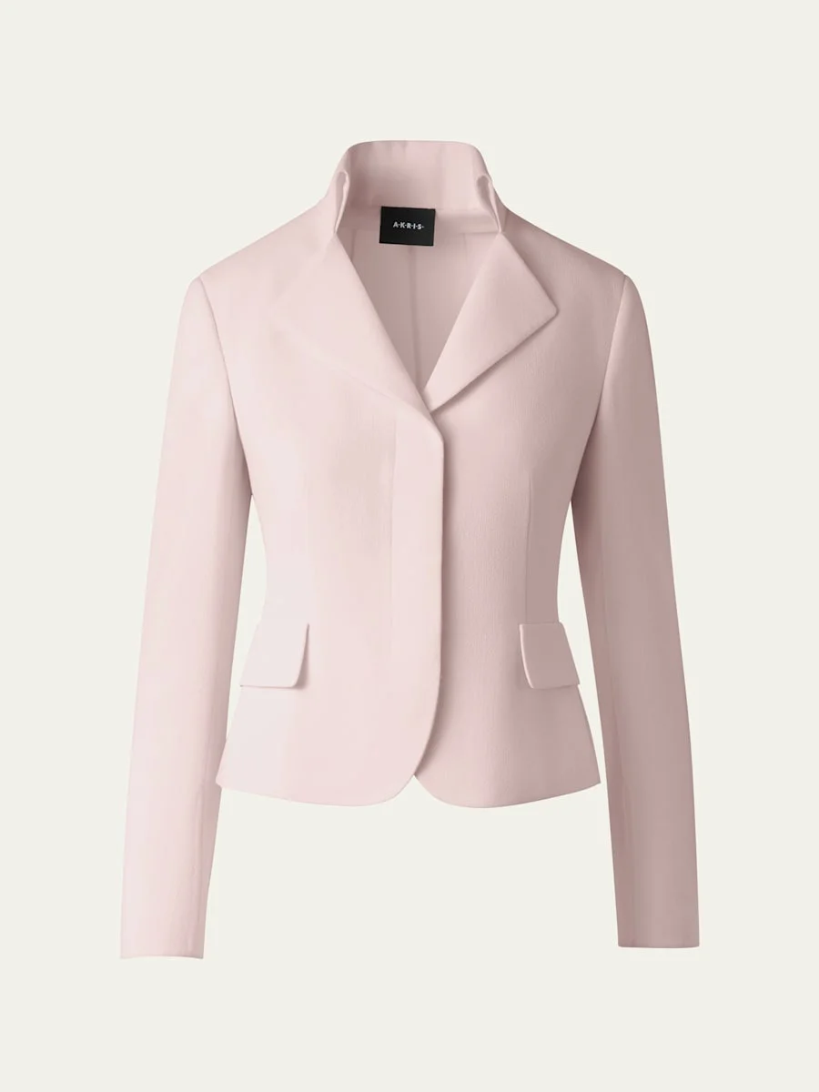 Akris "Amber" crepe double-face blazer Notch lapels; button front Bracelet sleeves; slit cuffs Fitted Waist darts Short length Virgin wool Cupro lining Dry clean Made in Romania Model is 5'10"/177cm. Online Inquiries: BGS21_B9F6E| Store Inquiries: #4859287