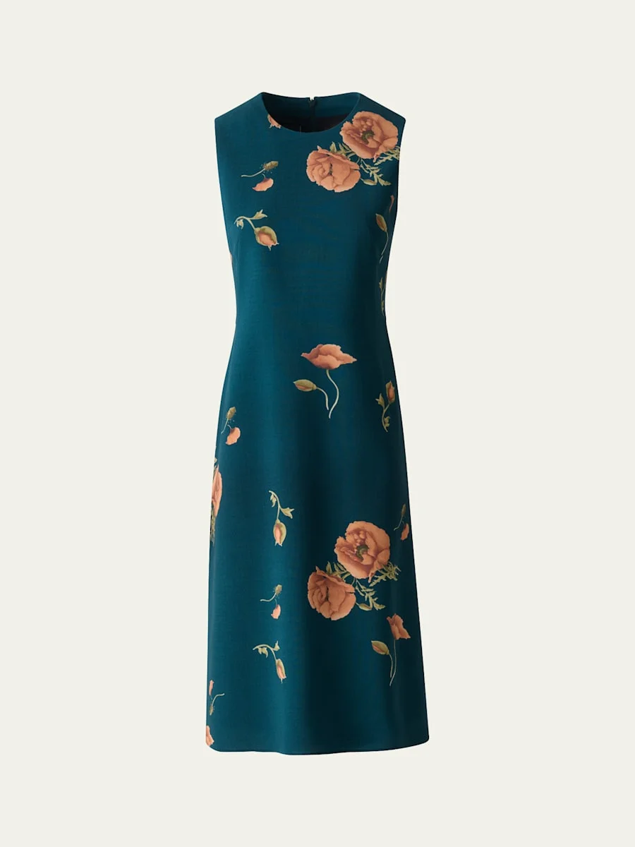 Akris anemone-printed dress cut from a double-face cashmere blend Crew neckline Sleeveless Hem hits around the knee A-line silhouette Invisible back zipper Cashmere/nylon/polyamide Lining: Viscose/silk Dry clean Made in Switzerland Online Inquiries: BGS21_B9UFS| Store Inquiries: #4970794