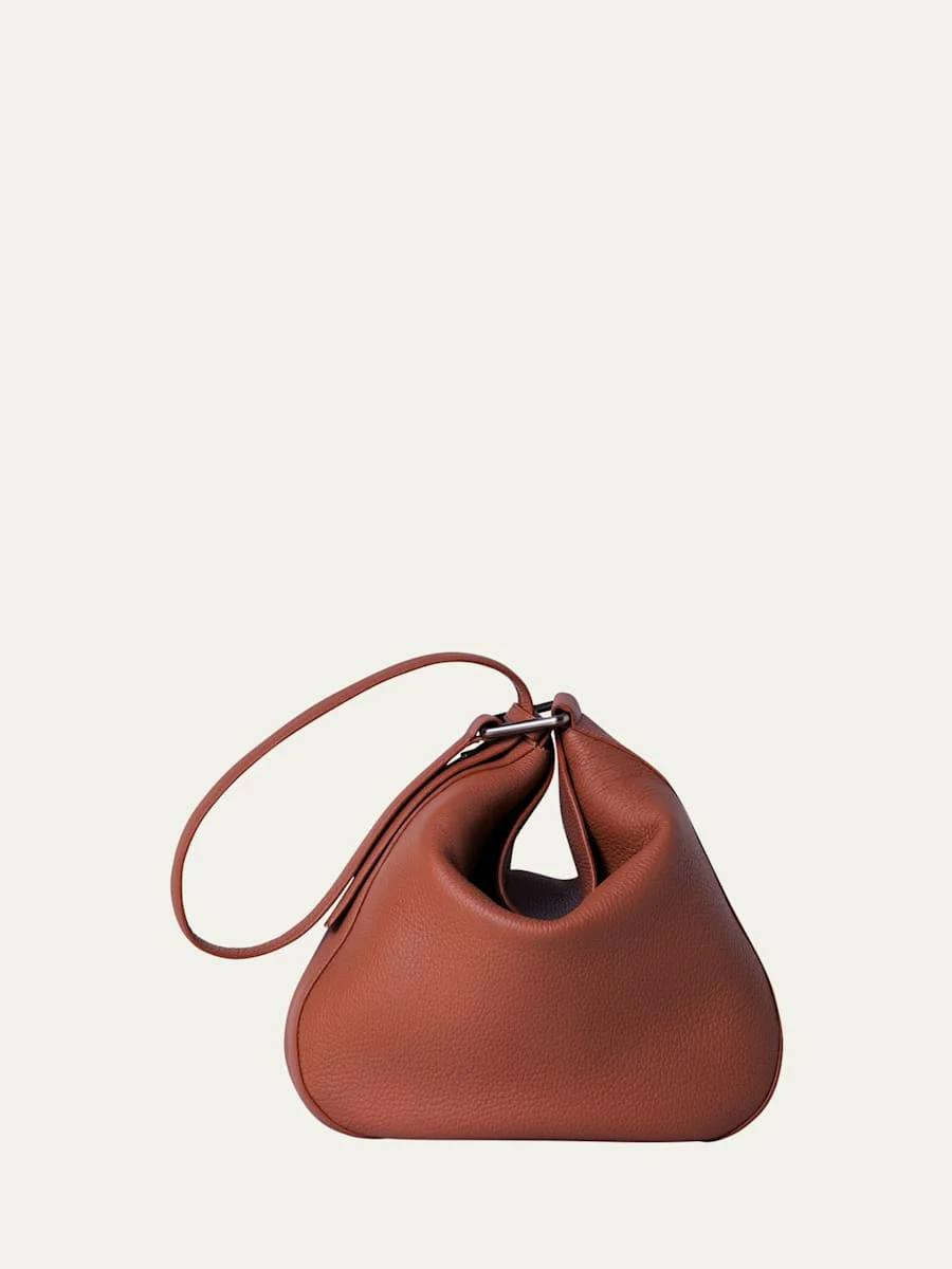 Akris "Anna" hobo bag in structured napa leather Adjustable shoulder strap with signature trapezoid ring Fold-over flap top with magnetic closure Interior, one zip pocket Approx. 13"H x 13.8"W x 3.9"D Made in Romania Online Inquiries: BGS21_V5XQ6| Store Inquiries: #4582779