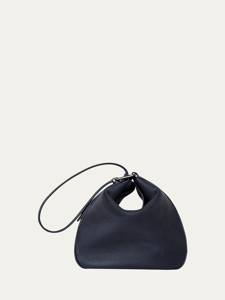Akris "Anna" hobo bag in structured napa leather Adjustable shoulder strap with signature trapezoid ring Fold-over flap top with magnetic closure Interior, one zip pocket Approx. 13"H x 13.8"W x 3.9"D Made in Romania Online Inquiries: BGS21_V5XQ4| Store Inquiries: #4582776
