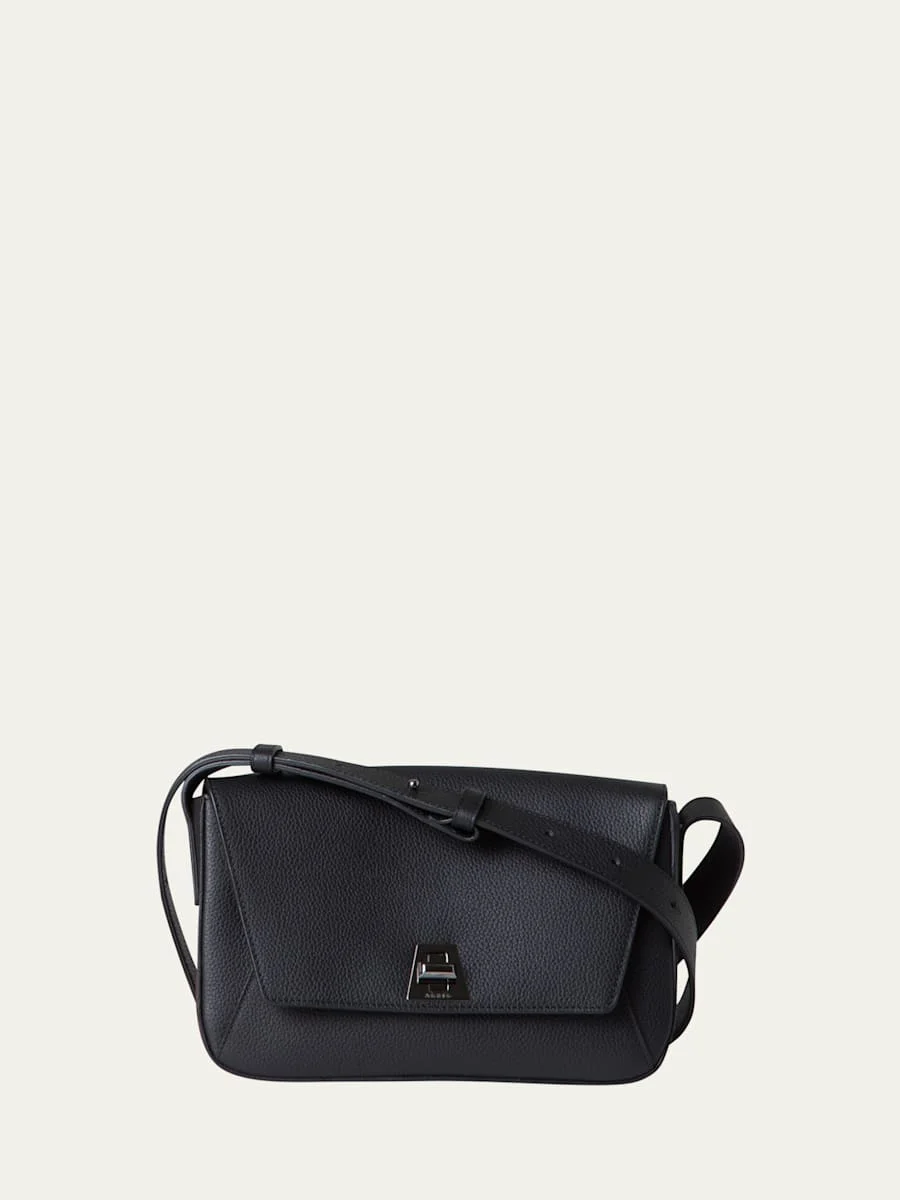 Akris "Anouk Lite" crossbody bag in leather Detachable, adjustable crossbody strap Flap top with turn-lock closure Interior, one slip pocket Approx. 5.5"H x 9.8"W x 3.1"D Made in Romania Online Inquiries: BGS21_V6CKB| Store Inquiries: #4889399