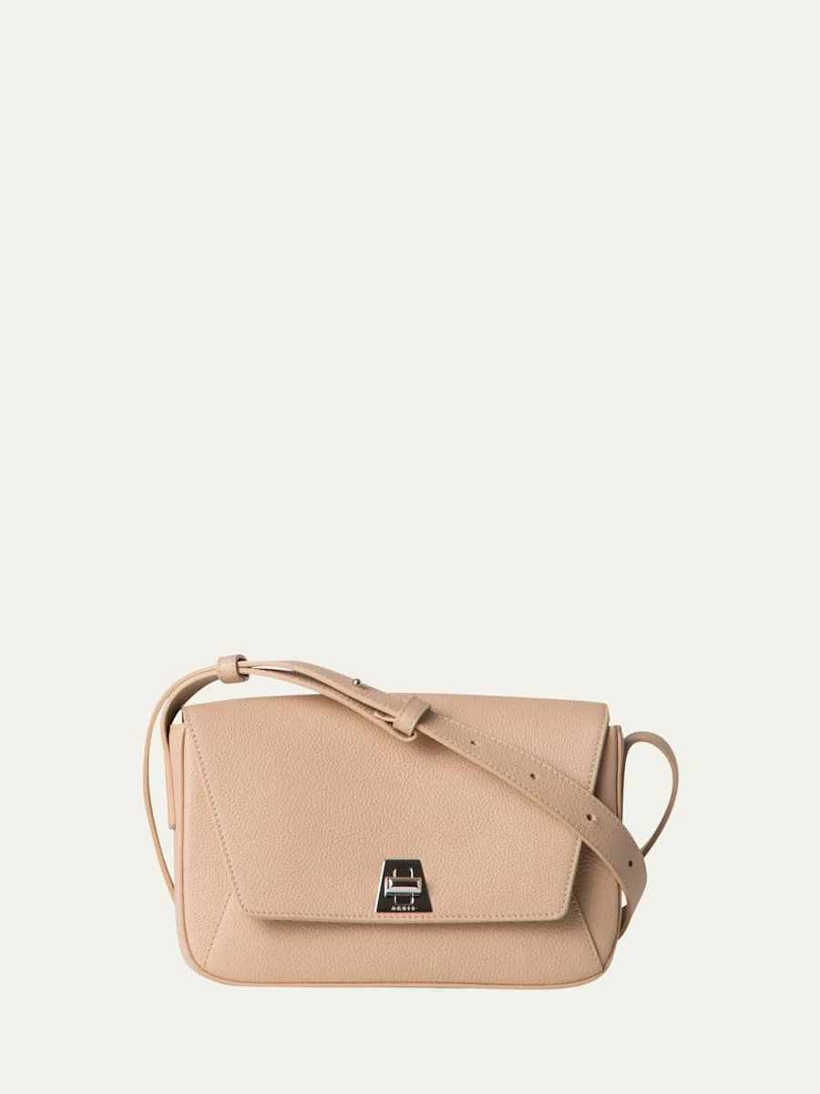 Akris "Anouk Lite" crossbody bag in leather Detachable, adjustable crossbody strap Flap top with turn-lock closure Interior, one slip pocket Approx. 5.5"H x 9.8"W x 3.1"D Made in Romania Online Inquiries: BGS21_V6CK7| Store Inquiries: #4889395