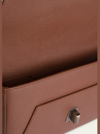 Akris "Anouk Lite" crossbody bag in leather Detachable, adjustable crossbody strap Flap top with turn-lock closure Interior, one slip pocket Approx. 5.5"H x 9.8"W x 3.1"D Made in Romania Online Inquiries: BGS21_V6CKG| Store Inquiries: #4889405