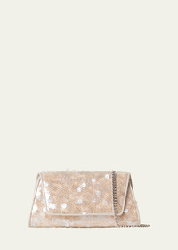 Akris "Anouk" trapezoid clutch bag in allover sequin-embellished fabric Detachable chain shoulder strap Can be worn as a clutch or shoulder bag Flap top with magnetic closure Interior, one zip pocket Approx. 4.3"H x 8.5"W x 1.5"D Polyester/leather Spot clean Made in Romania Online Inquiries: BGS21_V6FZM| Store Inquiries: #4969540