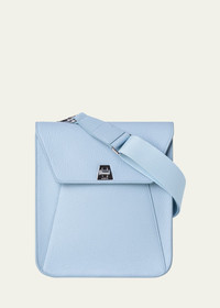 Akris messenger bag in napa calf leather Detachable, adjustable web shoulder strap Flap top with turn-lock closure Exterior, one back slip pocket and one slip pocket under flap Approx. 7.7"H x 9.5"W x 2.3"D "Anouk" is made in Romania Online Inquiries: BGS21_V5D15| Store Inquiries: #4258674