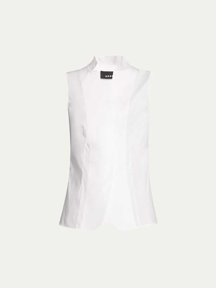 Akris baumwolle stretch blouse Notch lapels; button front Sleeveless Fitted Nylon/polyamide/cotton/elastane Made in Romania Model is 5'10"/177cm. Online Inquiries: BGS21_B96UX| Store Inquiries: #4784125
