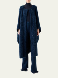 Akris knit cape coat crafted from brushed cashmere Detachable hood; button front Long cape sleeves Side slip pockets Full length Cashmere Dry clean Made in Romania Online Inquiries: BGS21_BA4PV| Store Inquiries: #5035720