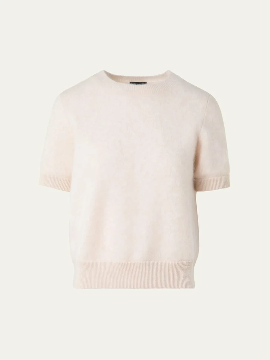 Akris brushed knit sweater offers a soft, luxurious texture Crew neckline Short sleeves Relaxed fit Ribbed hem Pullover style Cashmere Dry clean Imported Online Inquiries: BGS21_B9UFK| Store Inquiries: #4970787