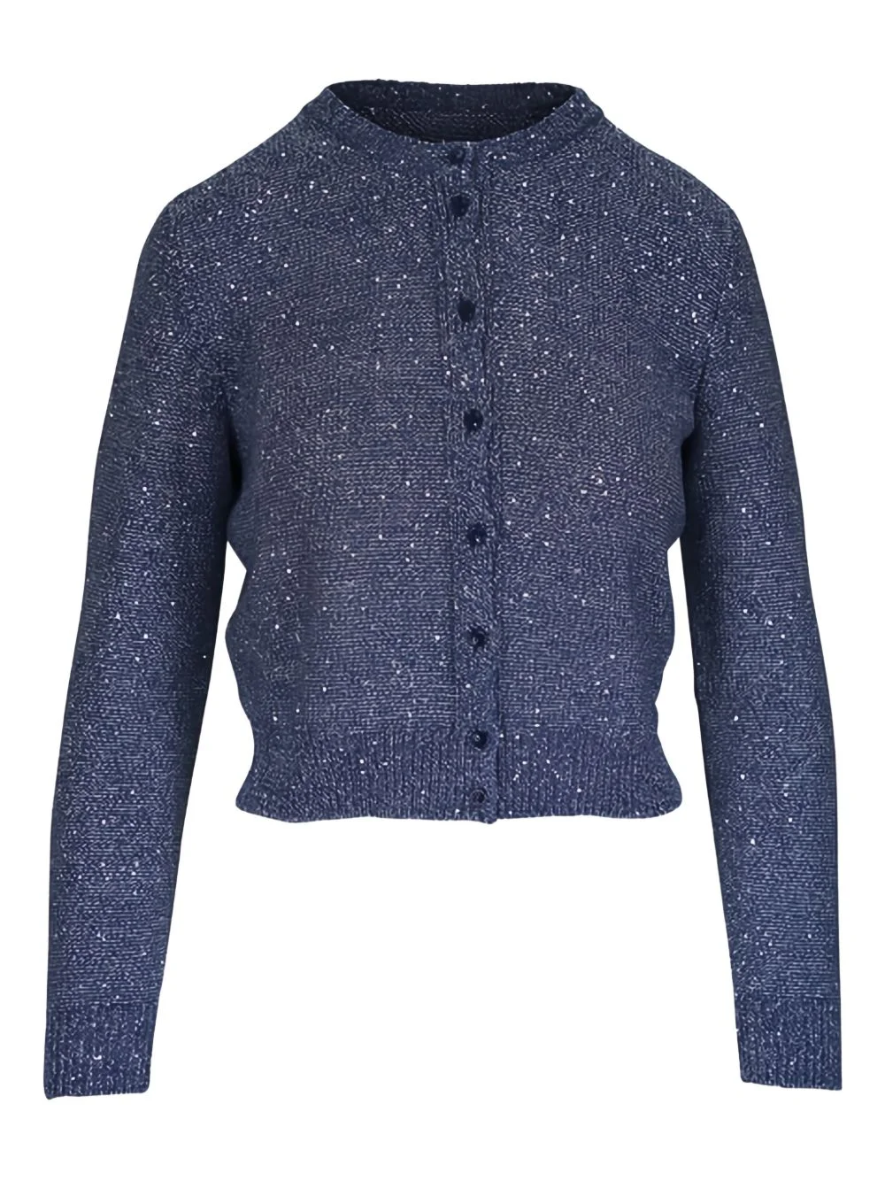 button-front sequinned cardigan Highlights - Blue - Button fastening - Long sleeves - Crew neck Made in United States Composition Linen/Flax 56%, Polyester 28%, Cotton 16% Washing instructions Dry Clean Only