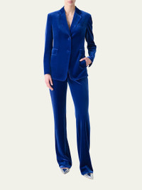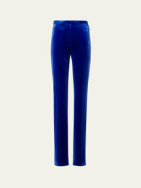Akris "Carl" pants crafted from luxurious stretch velvet Mid rise sits high on hip Invisible zip-side pockets Straight legs Full length Hook/zip fly Polyester/elastane Lining: Viscose/elastane Dry clean Made in Romania Online Inquiries: BGS21_B9VFM| Store Inquiries: #4982102