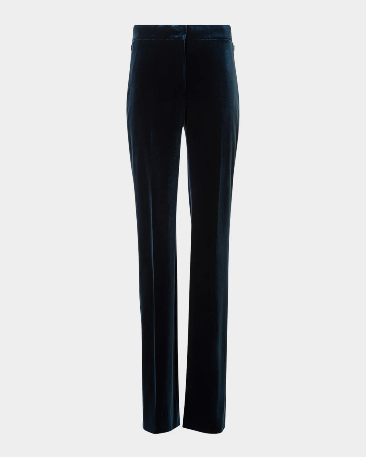 Carl Techno Velvet Stretch Straight-Leg Pants